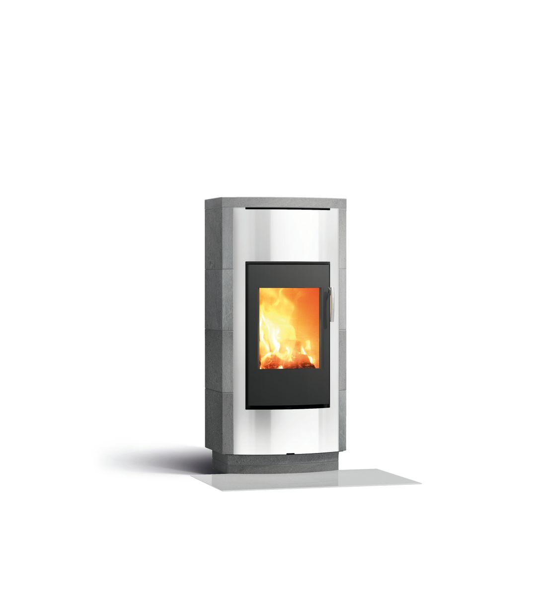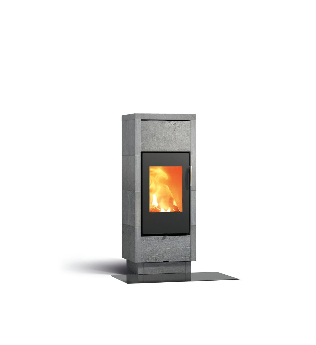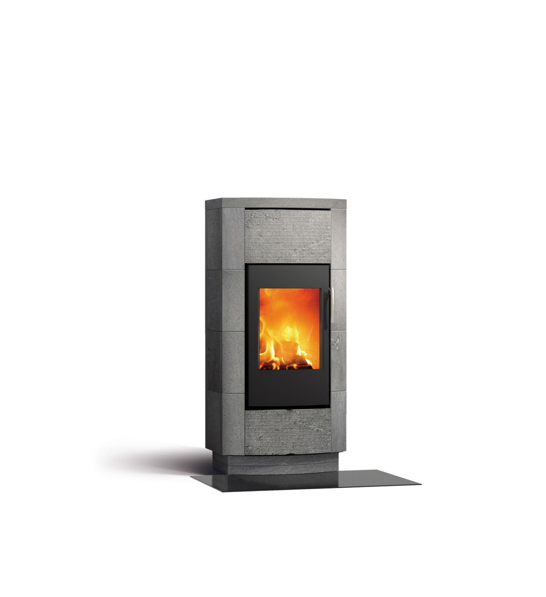 Bei den DEKO Due Modellen verlängert und mildert der Doppelmantel aus Mammutti-Speckstein die Wärmewirkung und schafft behagliche fortbestehende Wärme. Der Ofen ist vorne mit gerundenten Steinen verkleidet.