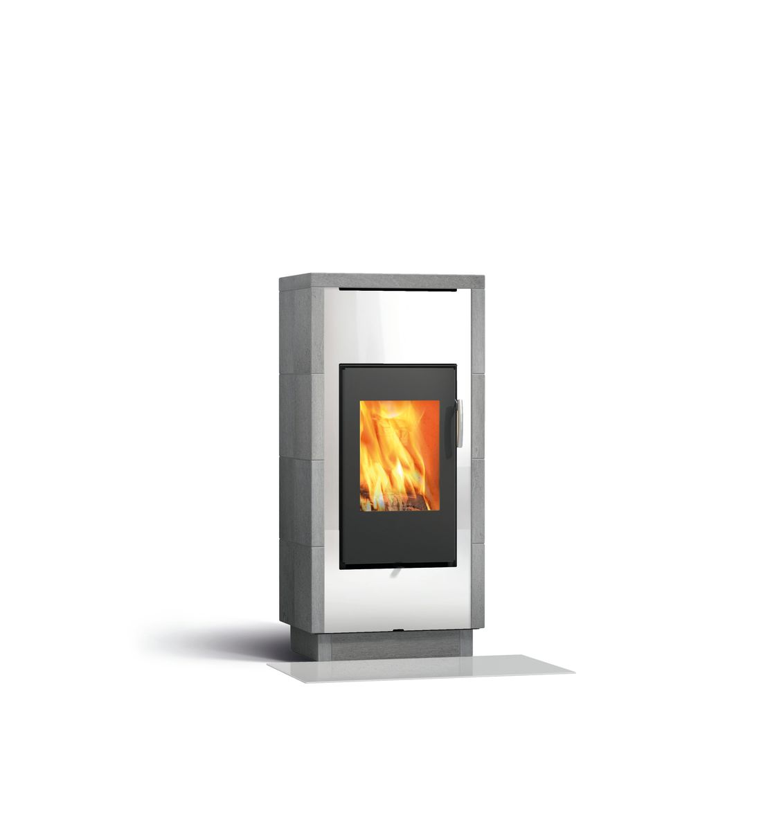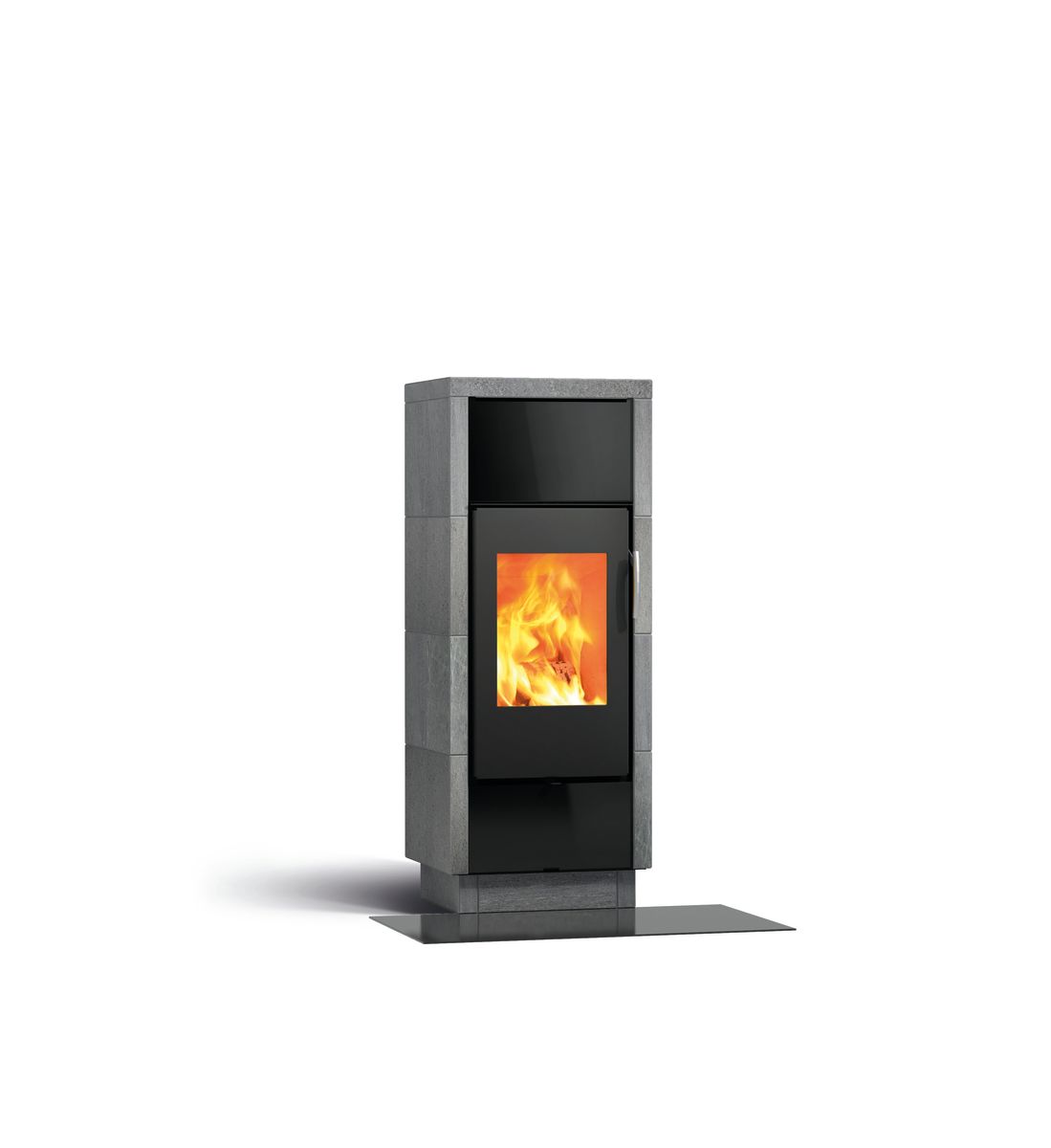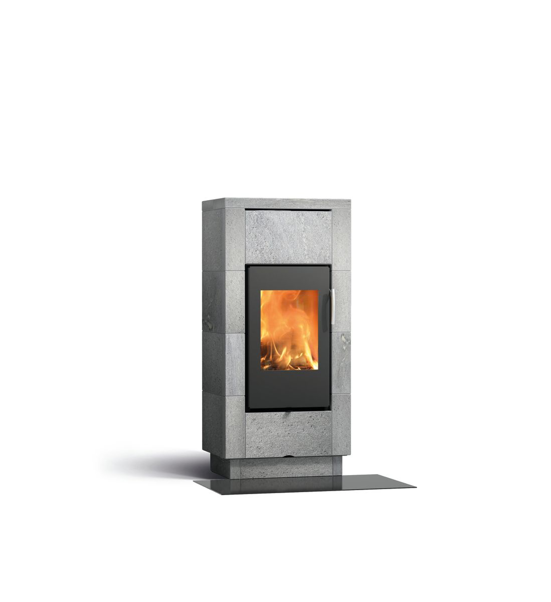 Bei den DEKO Due Modellen verlängert und mildert der Doppelmantel aus Mammutti-Speckstein die Wärmewirkung und schafft behagliche fortbestehende Wärme. Der Ofen ist vorne mit gerundenten Steinen verkleidet.